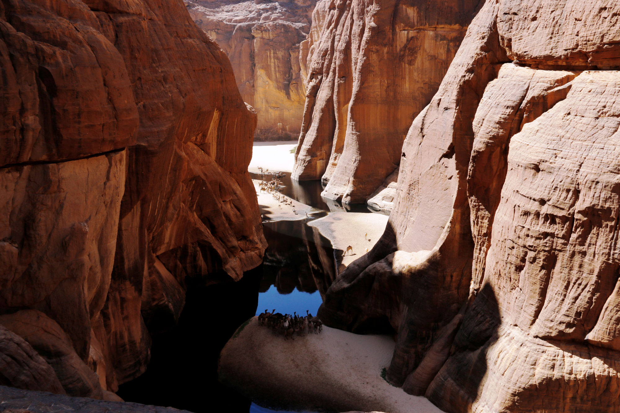 L'oued, che si snoda per una trentina di chilometri, termina in un grande anfiteatro roccioso e verdeggiante da cui iniziano le vere e proprie gole dell’omonima guelta, punto d'acqua permanente dove è facile incontrare nomadi Tébu con le proprie mandrie di cammelli. Punto d’acqua e fulcro di vita, la millenaria guelta è l’incredibile sede degli ultimi esemplari viventi di coccodrilli sahariani (cocodrilus niloticus), testimonianza di epoche remote. Nell’intera regione di Archeï, immerse in un paesaggio di indimenticabile bellezza, si trovano, sparse qua e là in ripari naturali, considerevoli stazioni di pitture rupestri, eseguite da antiche culture sconosciute che sono arrivate fino a noi lasciandoci il difficile ma divertente compito dell'interpretazione.