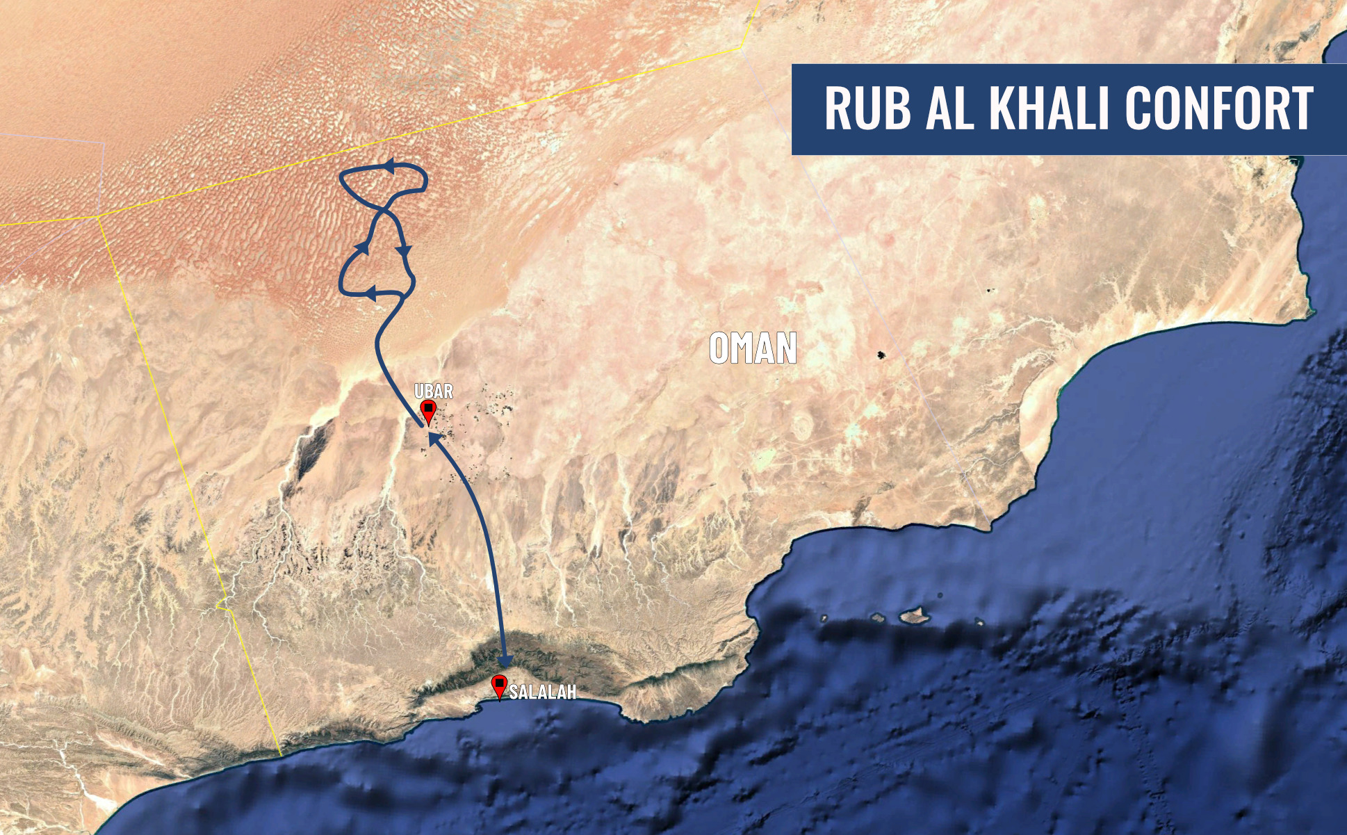 Un itinerario con partenza e rientro a Salalah, pensato per chi vuole vivere il deserto in comodità. Tutti e quattro i pernottamenti all’interno del Rub al Khali saranno infatti in comodi Lodge attrezzati con strutture fisse con camere e bagni privati. Le cene e le colazioni saranno servite in strutture chiuse in modo da garantire il massimo confort. Una possibilità unica di immergersi nelle grandi dune rosse che caratterizzano il Rub al Khali, senza rinunciare al confort.